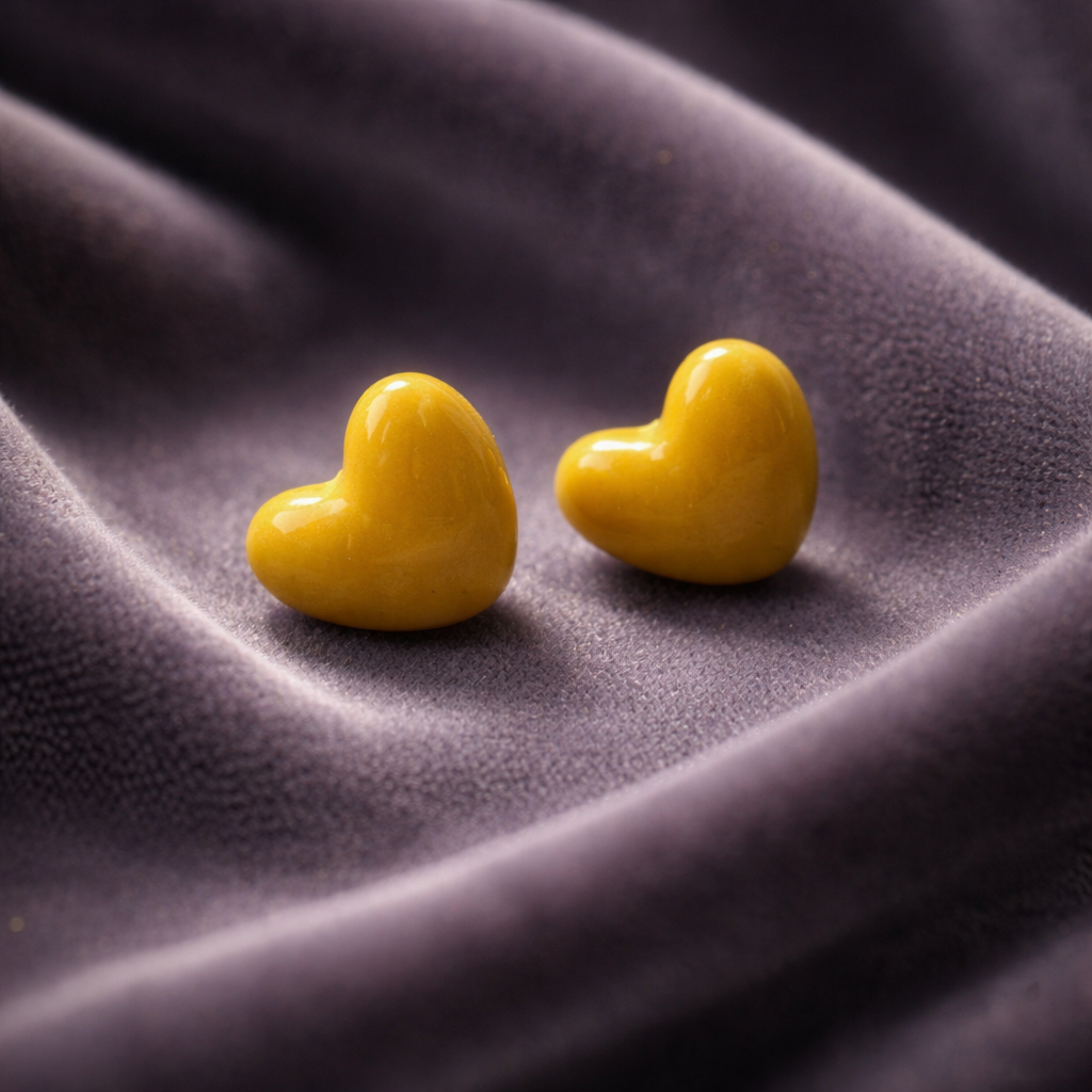 These glossy polymer clay heart studs are a simple pop of sunny color for everyday wear. A cute, giftable pair for birthdays, Valentine’s Day, or just because.